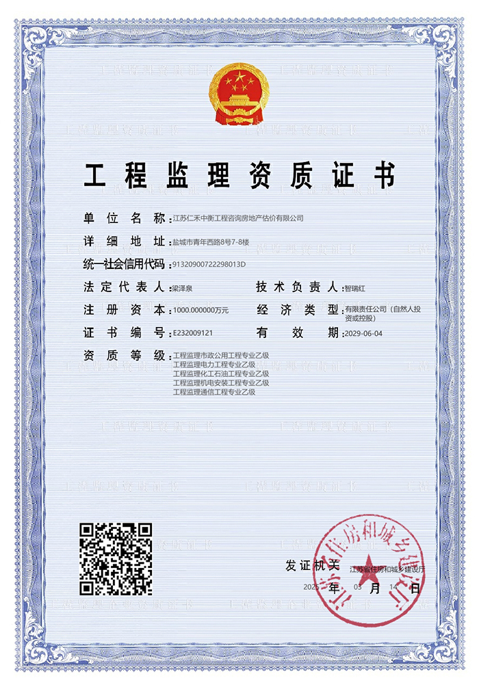 • 工程監理資質證書